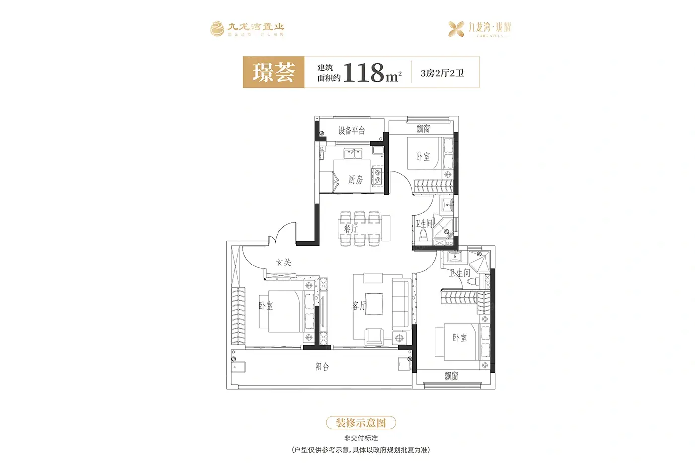 九龙湾珑耀118㎡ 3室2厅2卫1厨